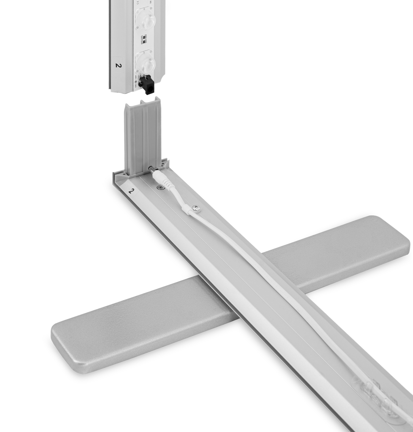 • – konstrukcija su greitojo sujungimo jungtimis, skirtomis integruotam LED apšvietimui maitinti