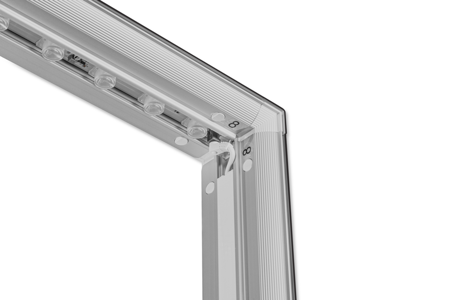 Rinkinyje: LUMIX™ BLACK sistema 300×250, maitinimo šaltinis (2 vnt.), XL kabelis jungiantis šviesos diodų juostas, krepšį su ratukais.